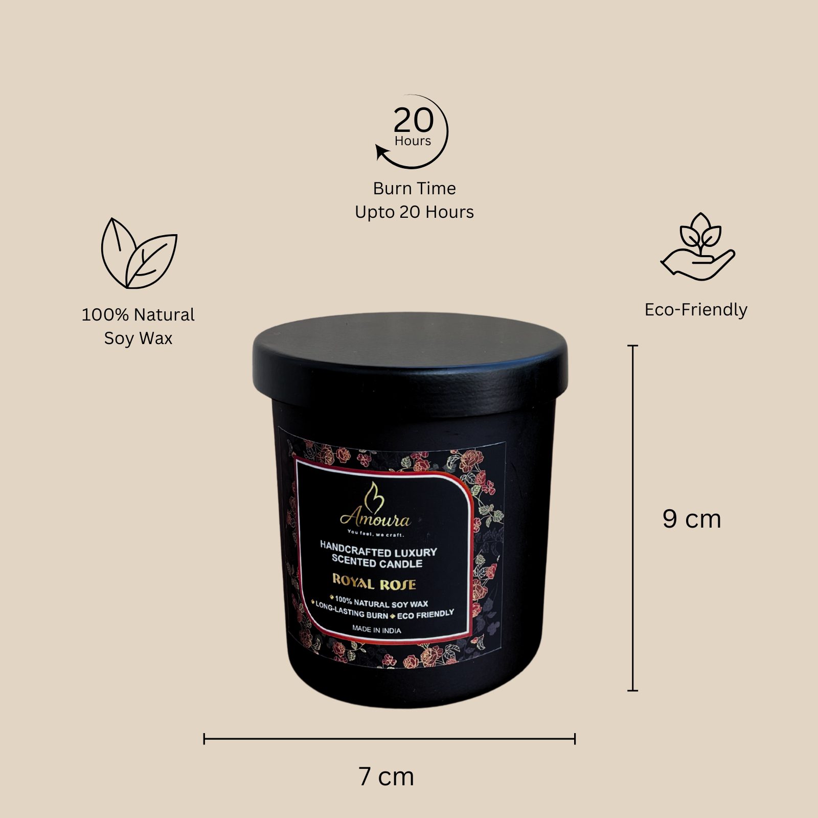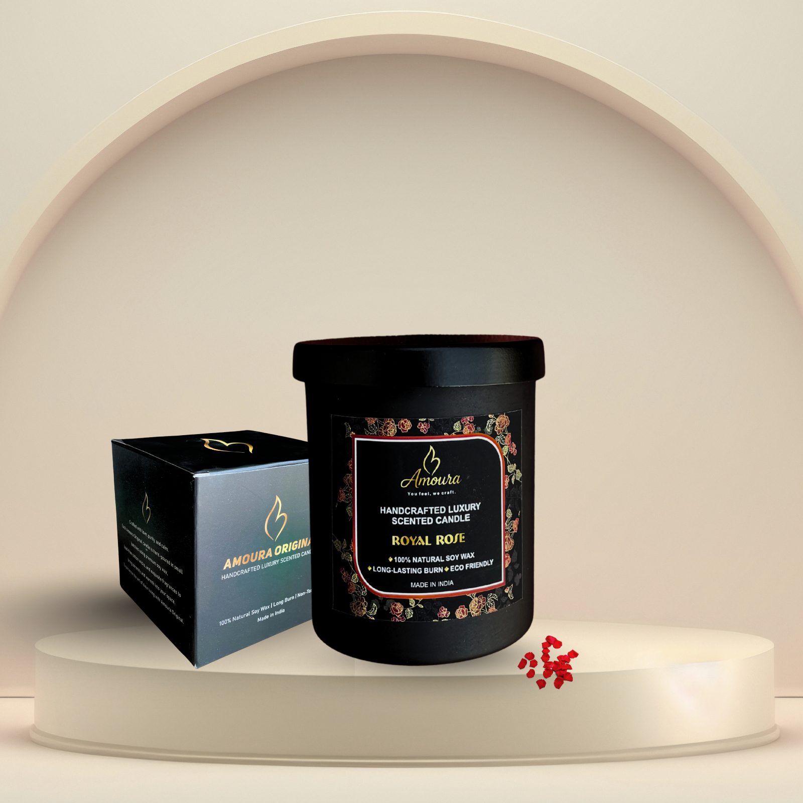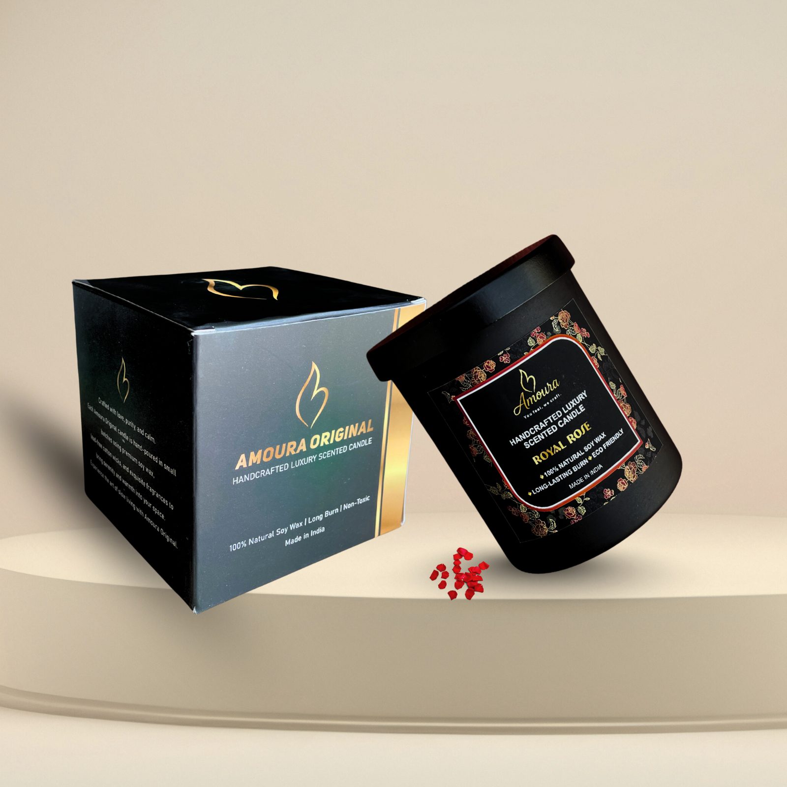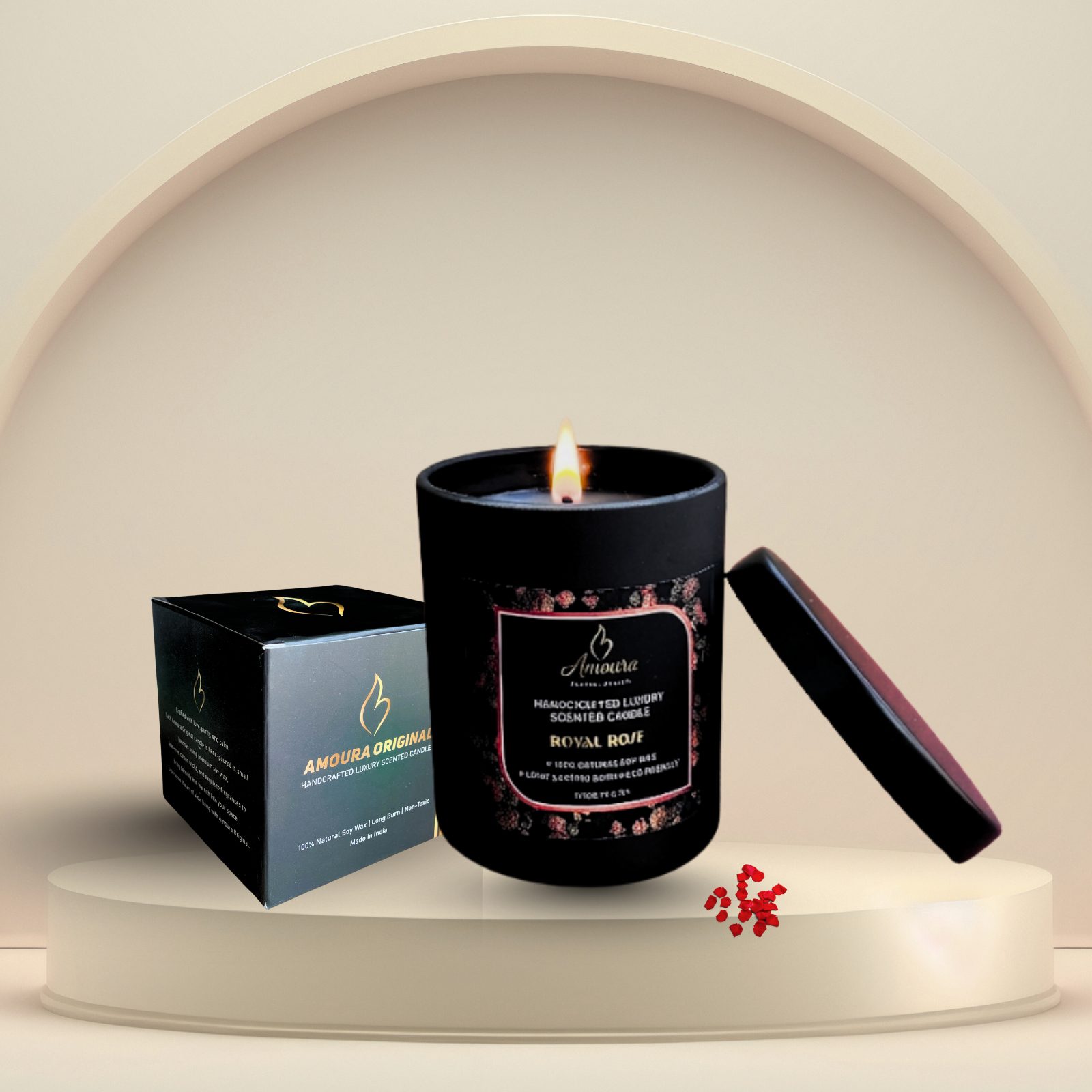 • A modern luxury candle crafted with detail and care by Amoura Original to ensure the perfect blend of design and fragrance.