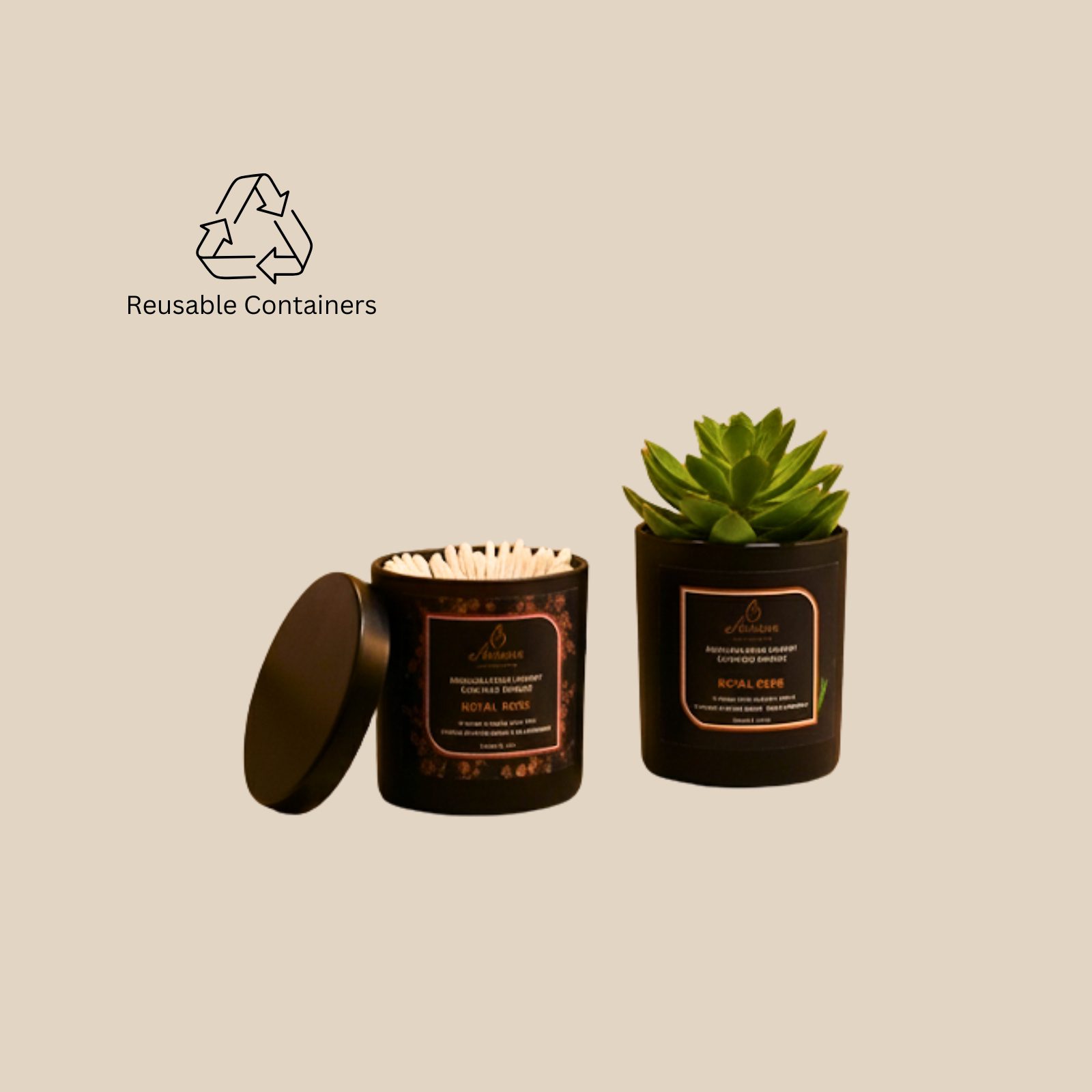 • Comes in a stunning matt black reusable glass jar topped with a premium metal lid, giving it a classy and modern aesthetic suitable for any décor.