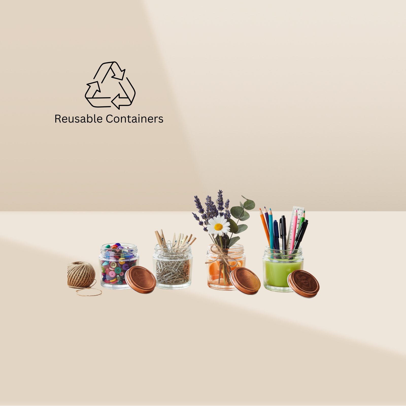 Reusable Glass Containers: Elegant, thick reusable glass jars (6cm × 6cm) designed to blend with any décor and can be repurposed after use.